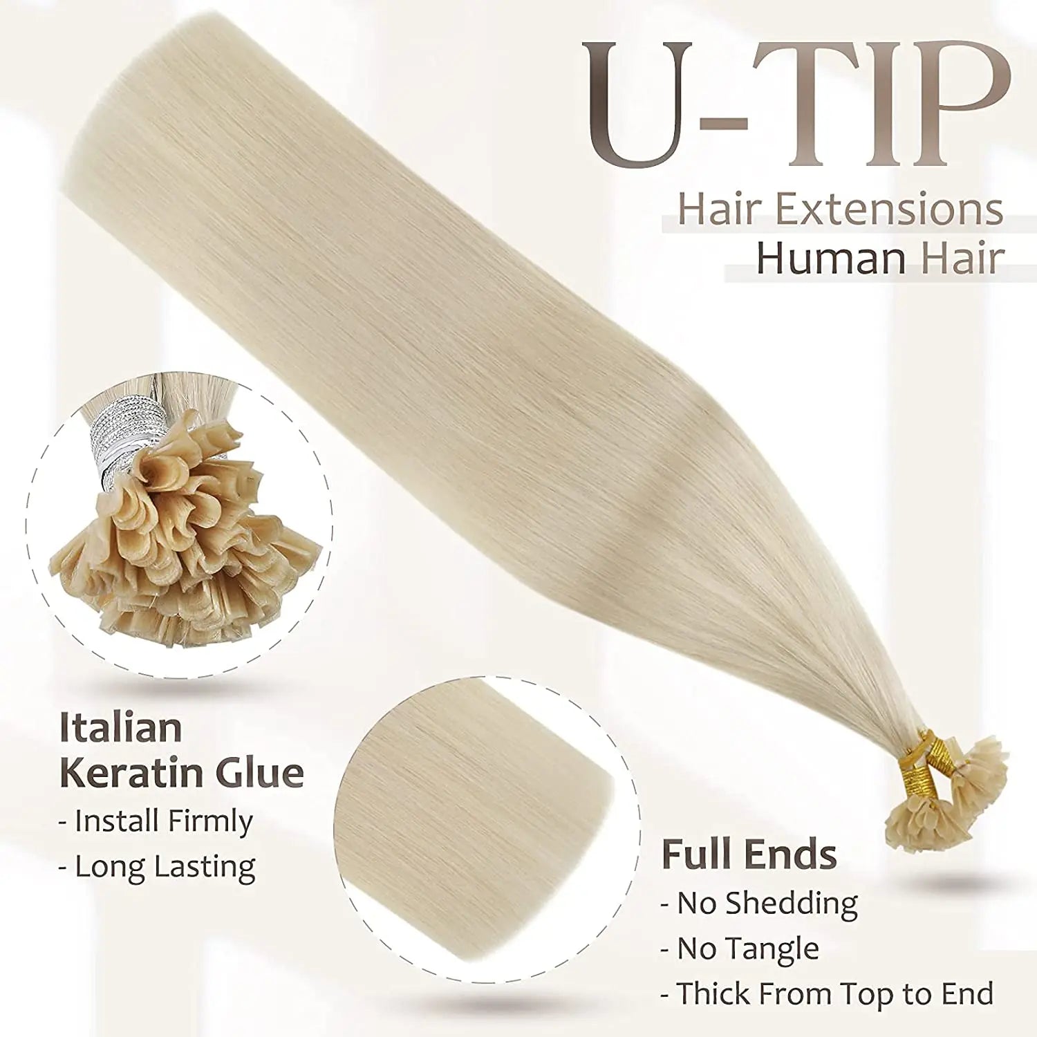 1. Produktnamn: 100 % Remy-hår med fusionshår med U-tips