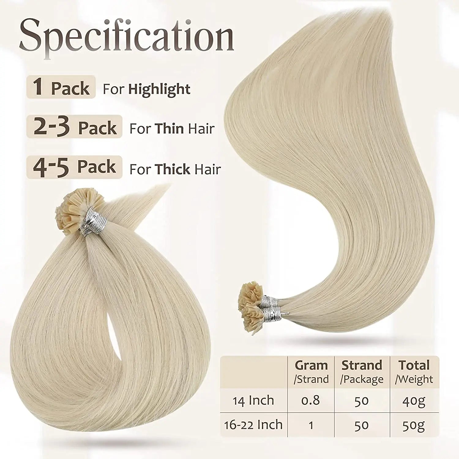*Vikt: 1 g per hårstrå; 50 hårstrån per förpackning; 50 gram per förpackning.