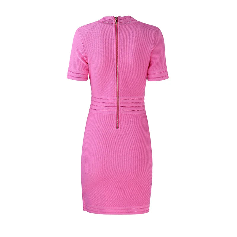 V-ringad Kortärmad Stretchig Stickad Bodycon Kort Elegant Rosa Klänning